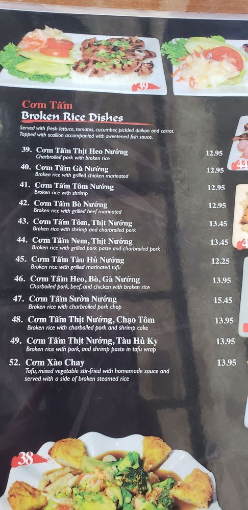 - Com Tam: The dishes with broken rice, like Com Tam Thit Heo Nuong, showcase charbroiled pork bursting with flavor.